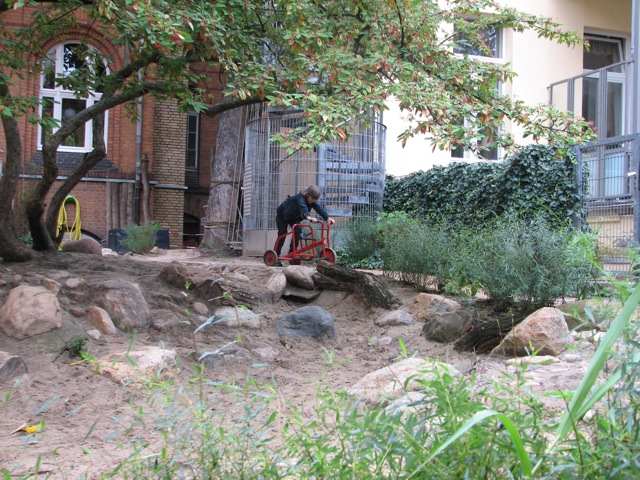 Die Sonderbewegung ist aber vor allem auch das unwirtlich begehbare Gestein am Rand vom Sand. Motorik ist die Koordination zwischen Sehen, Tasten, Gehen auf höchst anspruchsvollem Terrain. Wer in der Tanzschule glänzen will braucht einen schroffen Kindergarten.